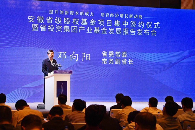 提升创新资本形成力,培育经济增长新动能。5月15日下午,安徽省级股权基金项目集中签约暨安徽省投资集团产业基金发展报告发布会在合肥成功举办。省委常委、常务副省长邓向阳出席会议并讲话。省政府副秘书长李必方、省地方金融监管局局长何昌顺以及省发展改革委、省科技厅、省经济和信息化厅、省财政厅、省审计厅、省国资委、安徽证监局和有关合作地市负责同志出席会议。合肥兴泰等18家市县出资平台、毅达资本等35家合作基金管理机构、丰原生化等5家投资企业代表以及清科研究、投中信息、母基金研究中心、安徽省基金业协会等行业机构及媒体界共100余名嘉宾参加会议。集团公司董事长发布了《安徽省投资集团产业基金发展报告(2019)》。集团公司总经理、省高新投公司董事长黄林沐主持会议。